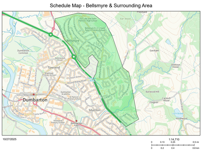 Full details of this proposal, which forms the proposed West Dunbartonshire Council (Bellsmyre and Surrounding Area) (20mph Speed Limit) Order, together with a plan and statement of reasons for proposing to make this Order, are available for inspection without payment of fee below and at West Dunbartonshire Council HQ, 16 Church Street, Dumbarton, G82 1QL.