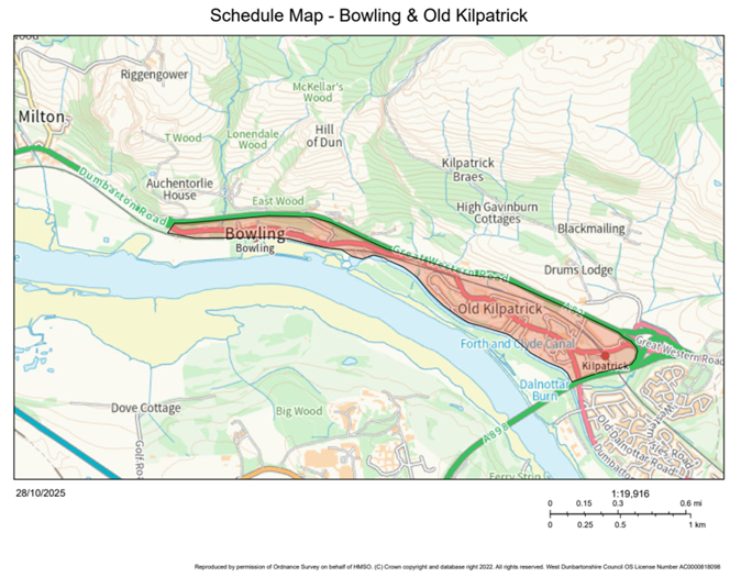Full details of this proposal, which forms the proposed West Dunbartonshire Council (Bowling and Old Kilpatrick) (20mph Speed Limit) Order, together with a plan and statement of reasons for proposing to make this Order, are available for inspection without payment of fee below and at West Dunbartonshire Council HQ, 16 Church Street, Dumbarton, G82 1QL.