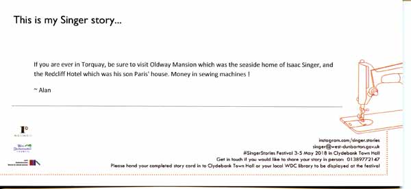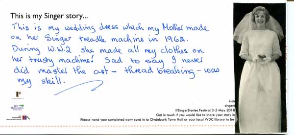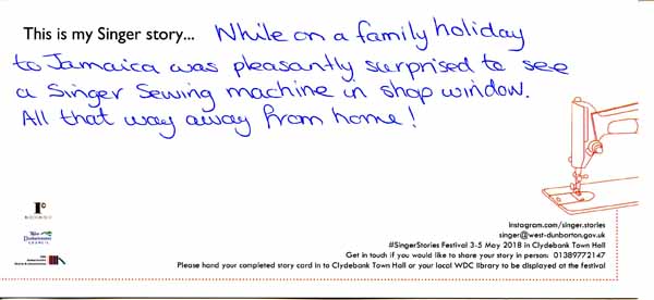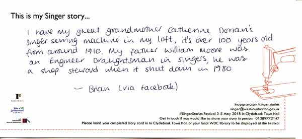 If you would like to share your Singer Stories with us, drop us an email singer@west-dunbarton.gov.uk or find us on Instagram @singer.stories